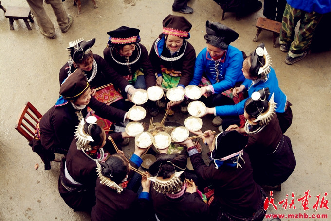苗家婚礼上新郎家准备酒席招待来宾。杨昌垠摄,引自民族画报