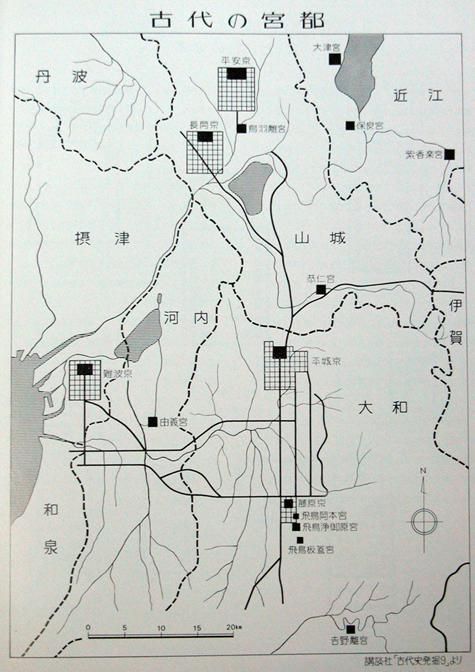 日本在这一时期开始建立自己的宫殿,在此之前都是茅草屋,并开始不断迁都,整体都城呈现出从南向北而迁的趋势(图十九)。