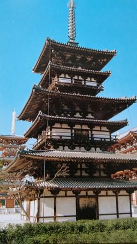 法隆寺是日本首批(1993)被列入世界文化遗产名录的古代寺院建筑遗址。法隆寺保留了最早的木构建筑,建造于592年。其中五重塔也是日本现存最早的五重塔,金堂是日本的国宝(图二十六)。